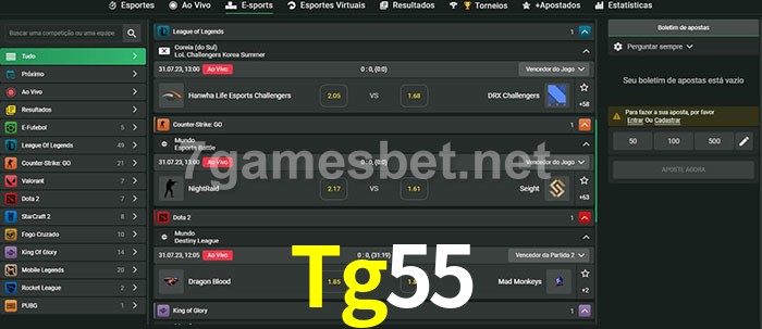 O Tg55 oferece uma grande seleção de opções de apostas em e-sports com probabilidades competitivas